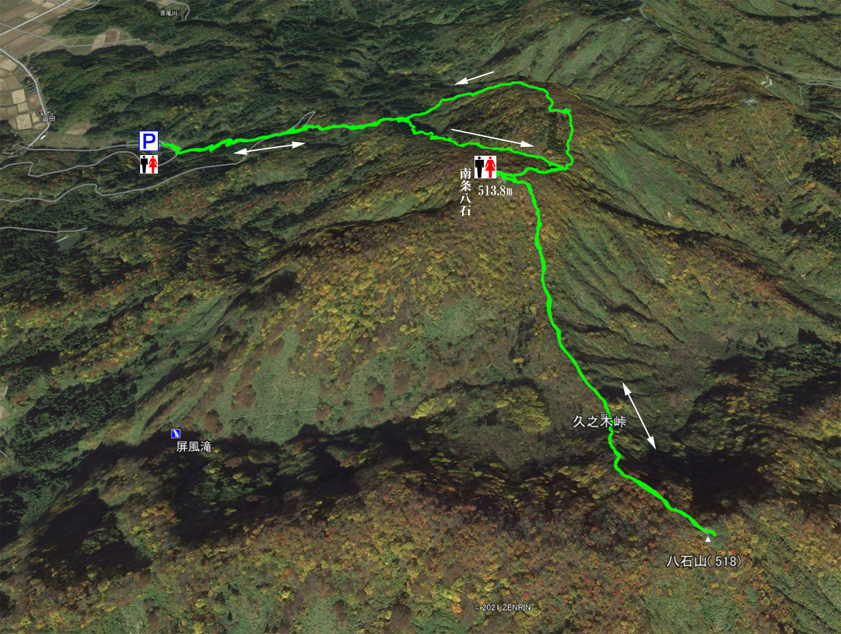 八石山鳥瞰図 八石山GPSデータ DL方法=地図画面→標高→マップ機能スクロール https://www.yamareco.com/modules/yamareco/detail-3151263.html |
