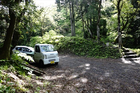 南条登山口駐車場(写真は上段の駐車場)上段・下段合計=約40台 八時着だったが人気の山なので既に駐車場は満車状態 (^_^; |