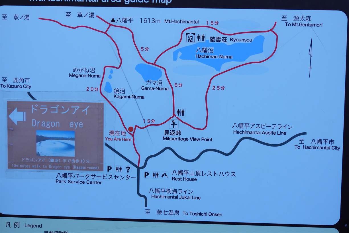 見返り峠〜陵雲荘(八幡沼)〜ガマ沼〜八幡平〜めがね沼〜鏡沼(ドラゴンアイ)コースで歩きます | ||||