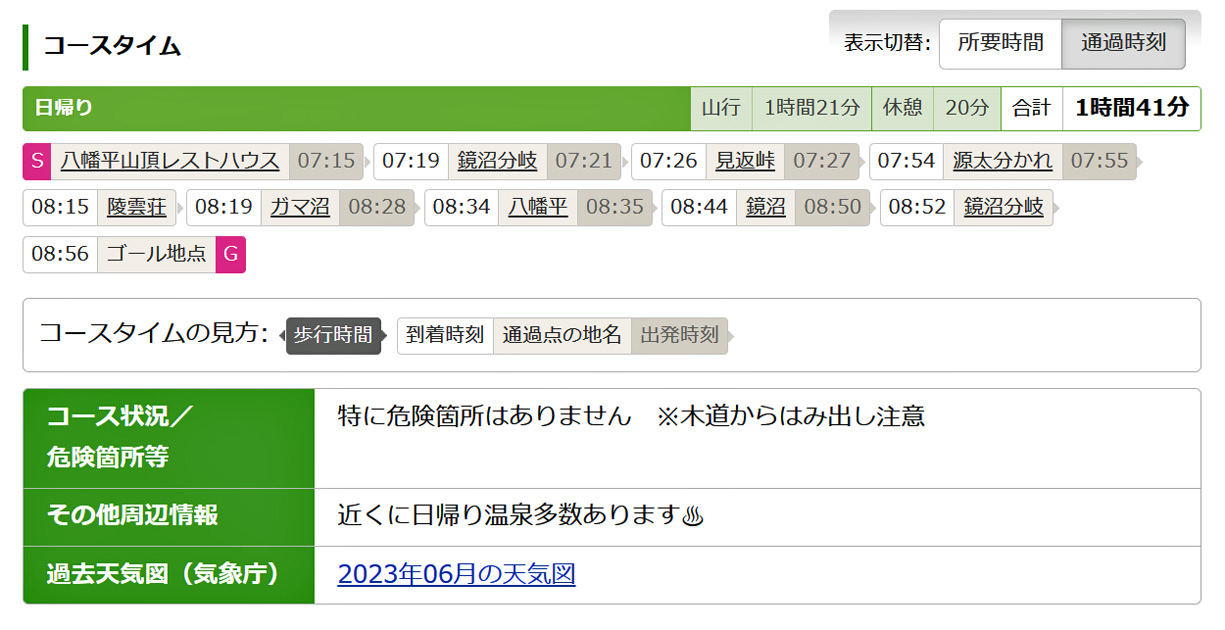 《八幡平ハイキング・コースタイム他》 写真撮影時間20分〜100分含む |