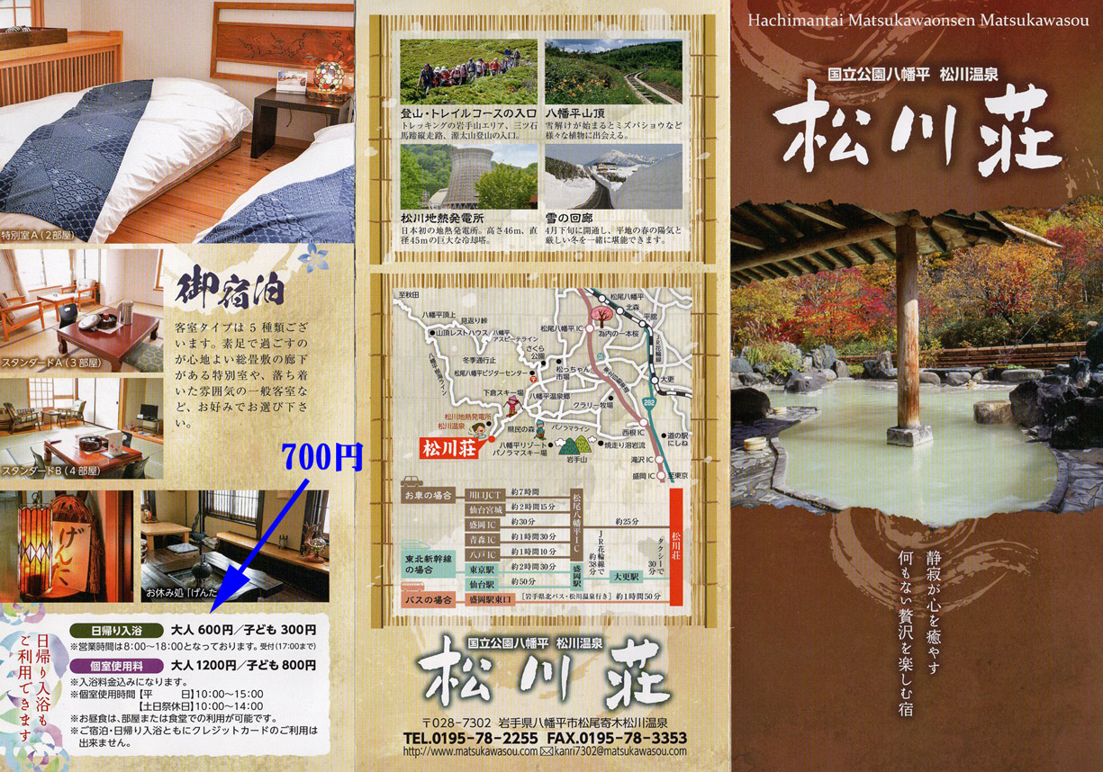 八幡平には沢山の日帰り温泉あるが今日は松川荘にきました | ||||