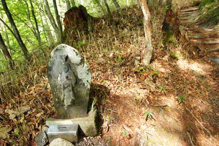 展望台/朽ちた石祠のまわりには石仏や石碑が建立されている | ||||