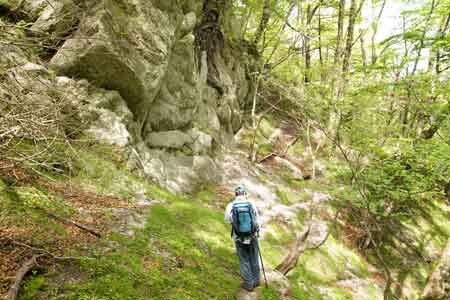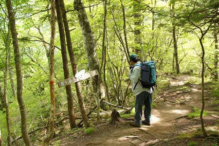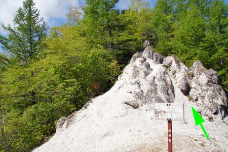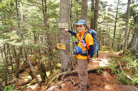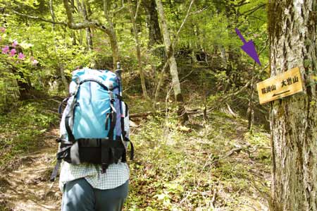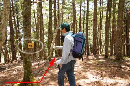 駒岩 木に打ち付けられた指導標に従い左折 |