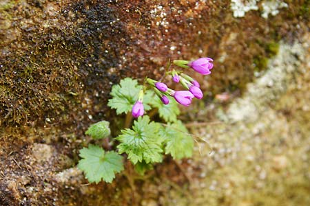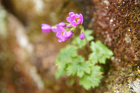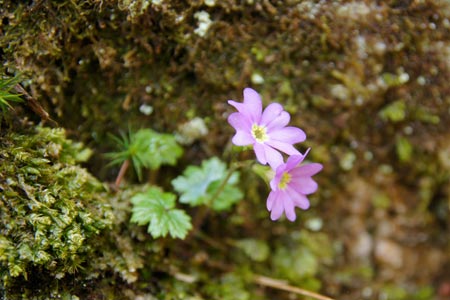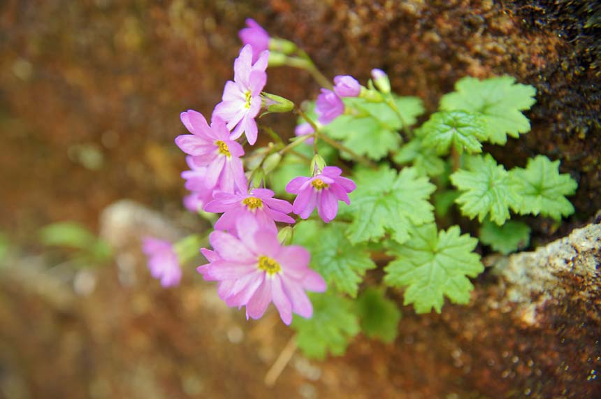 亜高山〜高山帯の湿った岩壁に生える多年草で高さは5〜10センチ コイワザクラの変種とされ、より深山に咲き葉が1/3ほど裂け鋸歯が尖るのが特徴 |