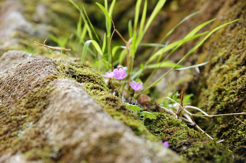 『イワザクラ』 花径:2.5〜3cm 花色:紅紫色 草丈・花茎:5〜10cm 茎葉:根生葉 束生、円形で縁は不規則に浅く裂け鋸歯がある 生活史:多年草 生育場所:山地の石灰岩の岩地 舟伏山のイワザクラ http://hirasan.canada2194.com/funabuseyama.html 『クモイコザクラ』