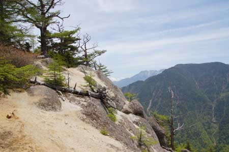 甲斐駒が一段と大きく見える/駒岩・南肩近辺より | 鞍部に向けて一気に下る | |||