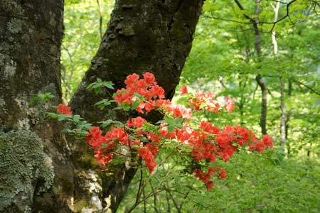 登山道を彩る花々 | 緑のカーテンに躑躅が映える | |||
