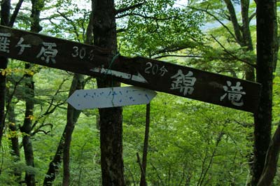 紅葉の時期に訪れてみたい | 錦滝まで20分の表示板 | |||