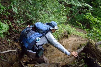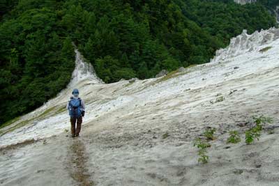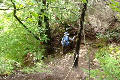 砂礫の急斜面を下る | 鞍掛山・錦滝の分岐点 | |||