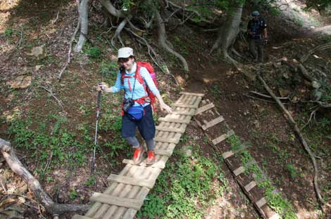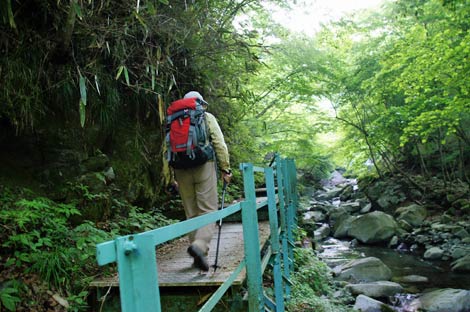 ゴーラ沢 渡渉 | ビヨォ〜ン! ビヨォ〜ン! と揺れる木橋 | |||