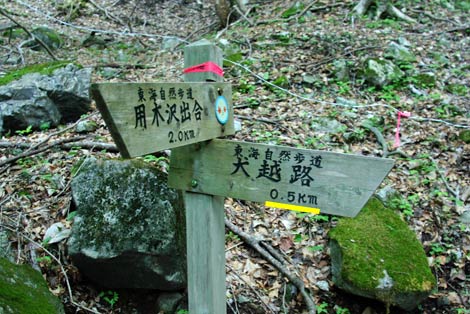 この橋から20分も歩けば急登が待っているのだ〜! | 犬越路まで0.5` ここから急登になりまっせ! |