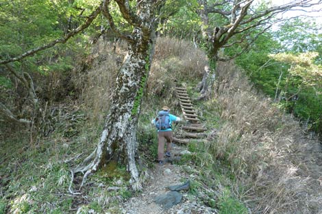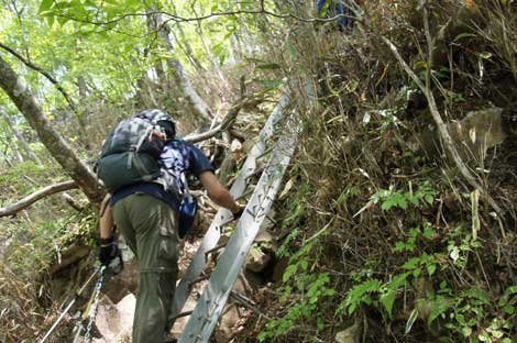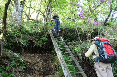 この鉄梯子を登れば大笄(おおこうげ)が近い | シロヤシオはまだかいな〜? | |||