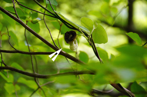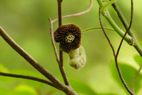 オオバウマノスズクサ(大葉馬の鈴草) ・ アゲハチョウ(幼虫)の食草 昔は生薬として利用されていたらしいが現在は毒性確認で利用中止 ☆花名はAOKI様に教えていただきました☆ |