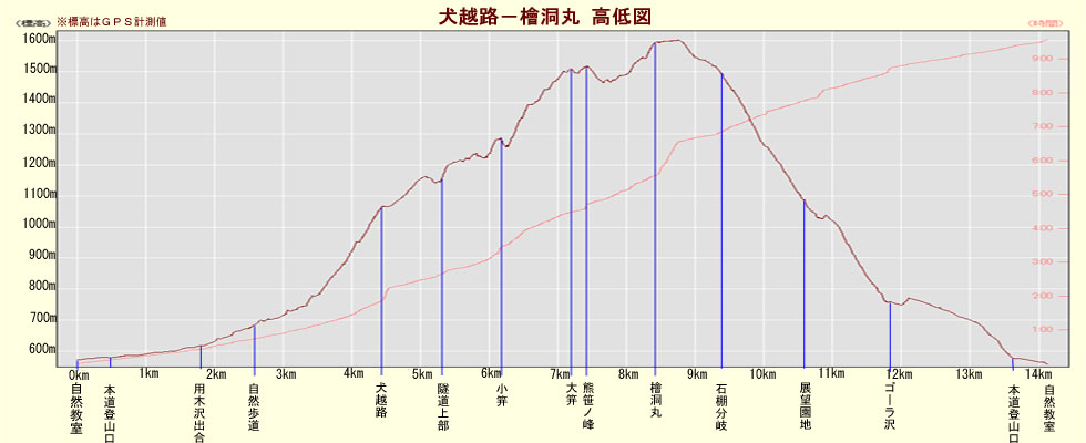西丹沢自然教室標高/545M 標高差/1056M 総歩行距離/14142M | ||||