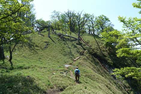 大笄手前まで痩せ稜線が続くので慎重に・・・ | 土砂崩落地帯 | |||