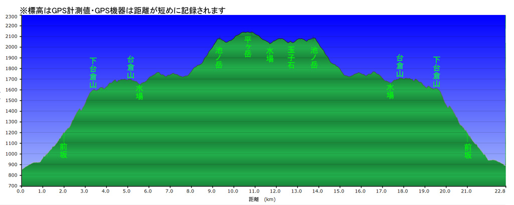 平ヶ岳・鷹ノ巣ルート高低図 | ||||