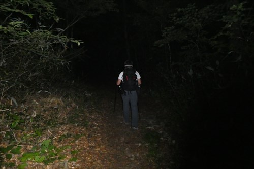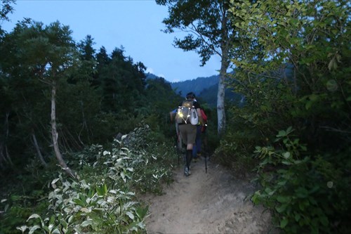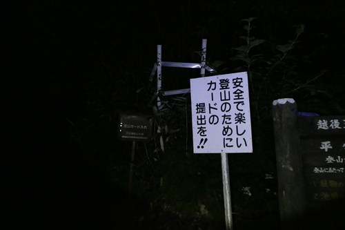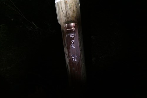 平ヶ岳まで10.5`指導標 | 夜が明け始める | |||