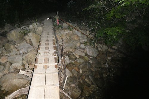水場の沢までは林道ほどの広さあり | 水場(沢)に架かる橋 | |||
