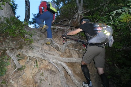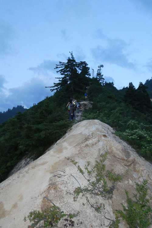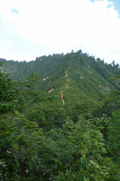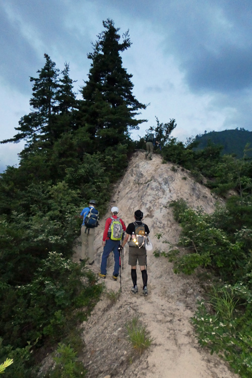 あそこのてっぺんまで行けば痩せ尾根終了 | お助けロープ | |||