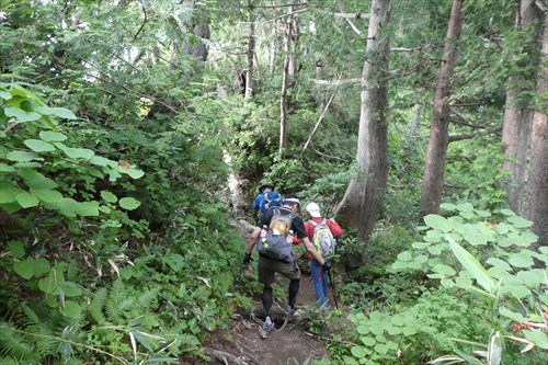 写真ではわかりにくいが池ノ岳手前の展望地まで胸突き八丁の登りです ※下山時はザレ道下りとなるのでスリップ注意! |