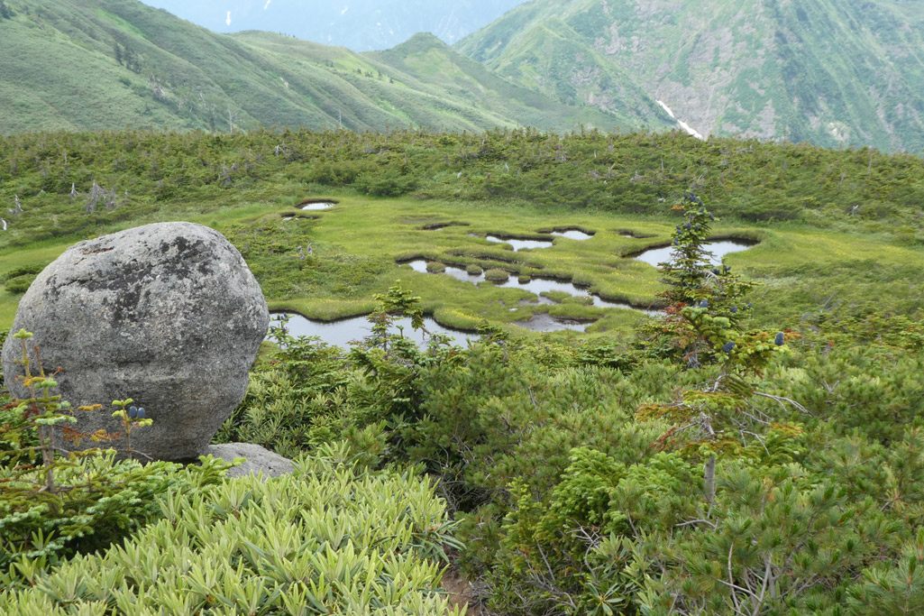平ヶ岳最高点方面の池塘が干上がっていました(悲) | ||||