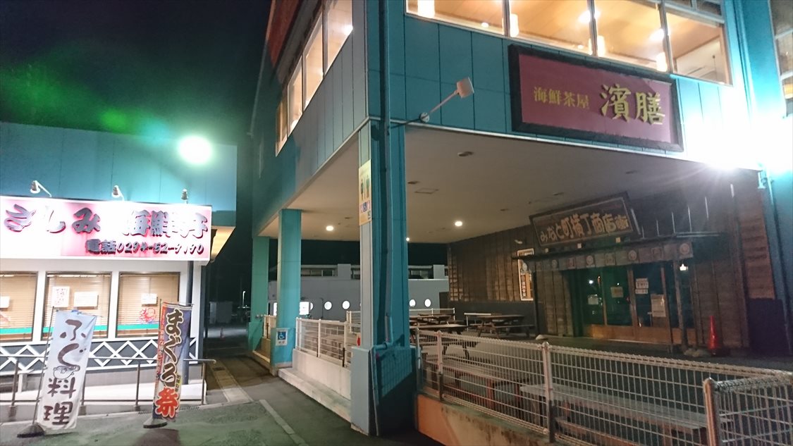 車中泊・道の駅おさかなセンター 濱膳でビール&夕食 敷地内や近辺にはコンビニや食事処が多いので食いっぱぐれの心配なし |