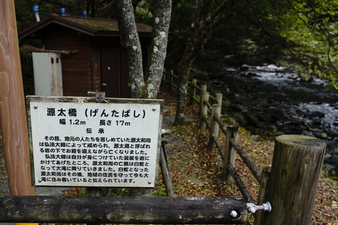 源太橋解説板 後方はトイレ(場所が場所だけにトイレがあるだけでも立派?) | ||||