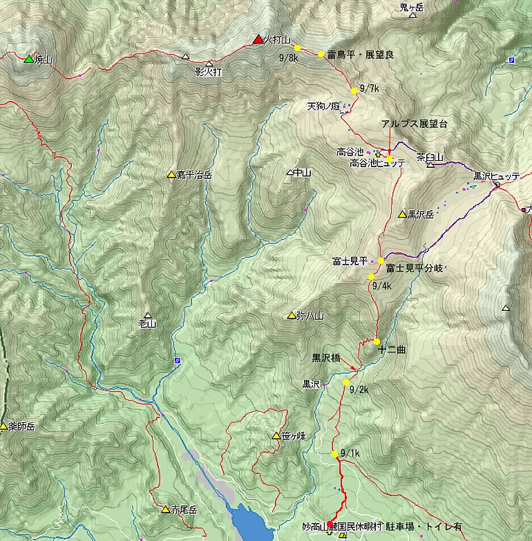 所要時間 長野発 00:10 → 笹ヶ峰駐車場着 2:00 (仮眠) 朝食 4:15 笹ヶ峰駐車場発 5:05 〜 黒沢(水場)5:45 〜 富士見平分岐点 7:15 〜 高谷池ヒュッテ 8:07 (撮影20分) 〜 山頂着 10:15 (昼食) 山頂発 11:00 〜 高谷池 12:11 〜 富士見平分岐点 12:49 〜 黒沢 13:47 〜 笹ヶ峰駐車場着 14:25 |