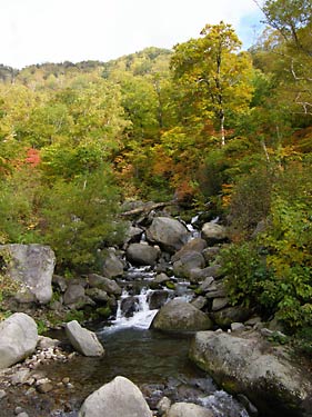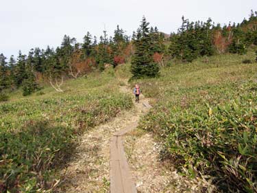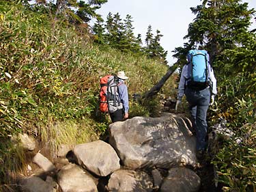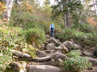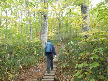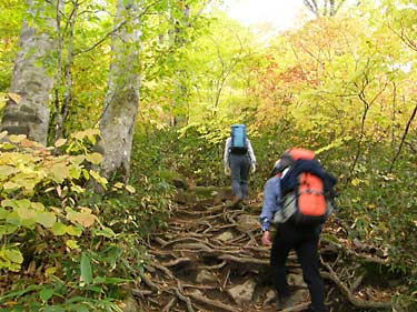 夏はブナや広葉樹が新緑のカーテンとなり、秋は色鮮やかな紅葉が見事な登山道だ。