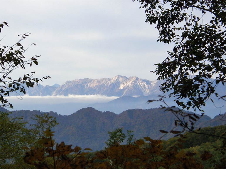 黒沢の橋を渡って十二曲りと呼ばれる九十九折りの急登をすぎると弥八山を左に見ながらの