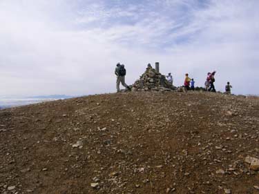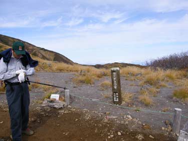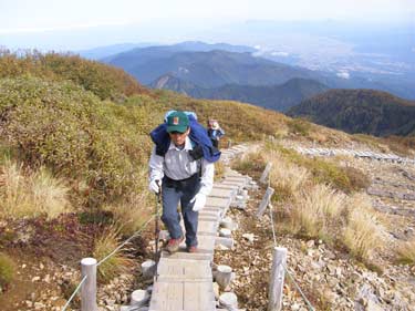 雷鳥平を尾根に沿って進みガレ場に作られた木道(急登)を登り切ると火打山山頂だ。