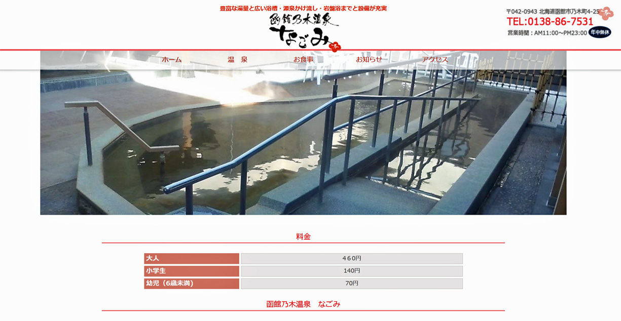 函館乃木温泉『なごみ公式ホームページ』 要注意=シャンプー・石鹸は無し・ドライヤー1分10円 |