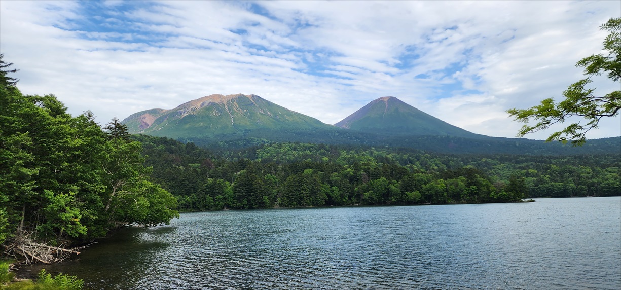 雌阿寒岳下山後、オンネトーから雌阿寒岳&阿寒富士を望む♪ | ||||