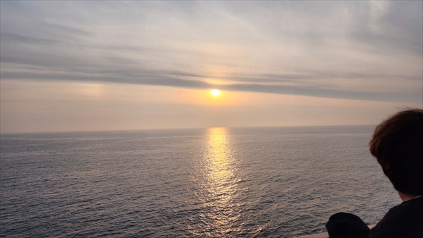 PM 6:30 船上からの夕陽 | 2025年6月21日 AM 4:07 北海道小樽港に入港 |