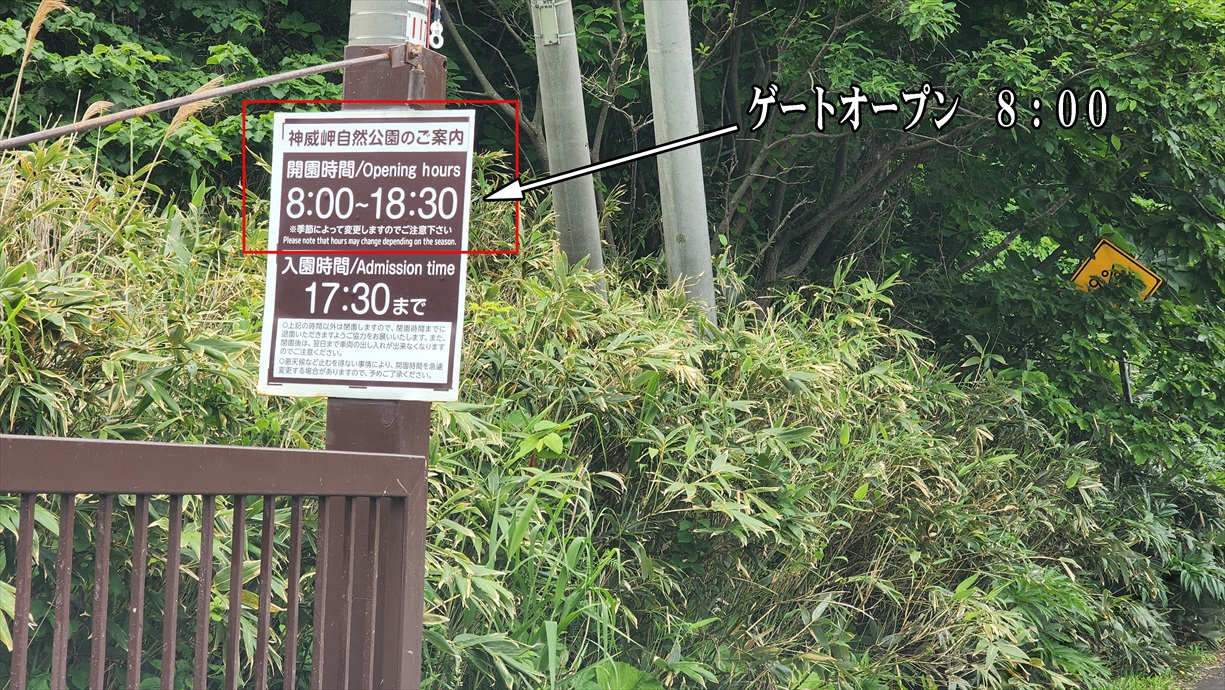 神威岬自然公園ゲートは8時オープンなので要注意! | ||||
