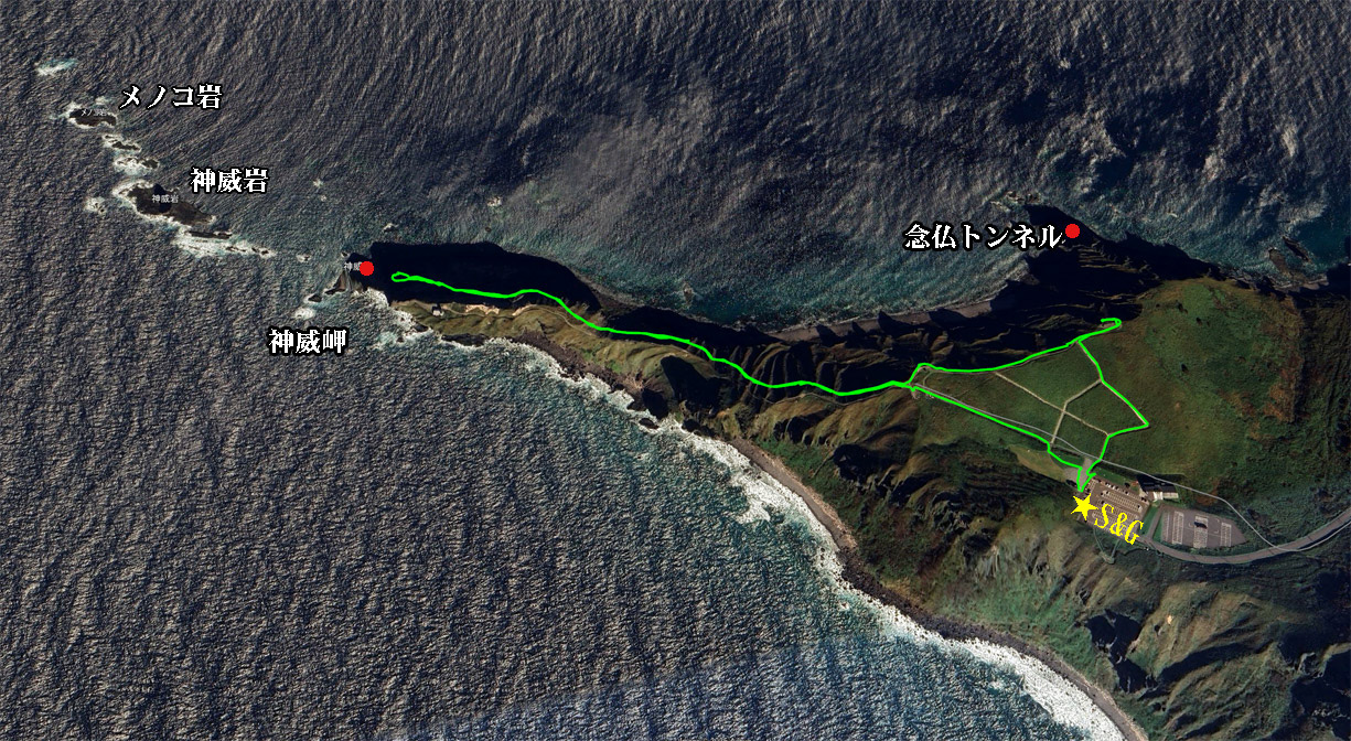 神威岬鳥瞰図 神威岬ヤマレコ⇒https://www.yamareco.com/modules/yamareco/detail-8375037.html |