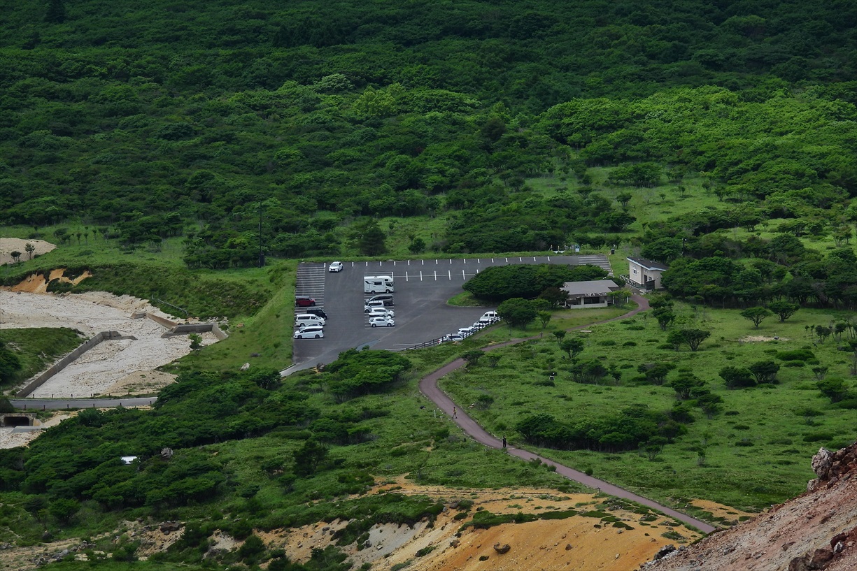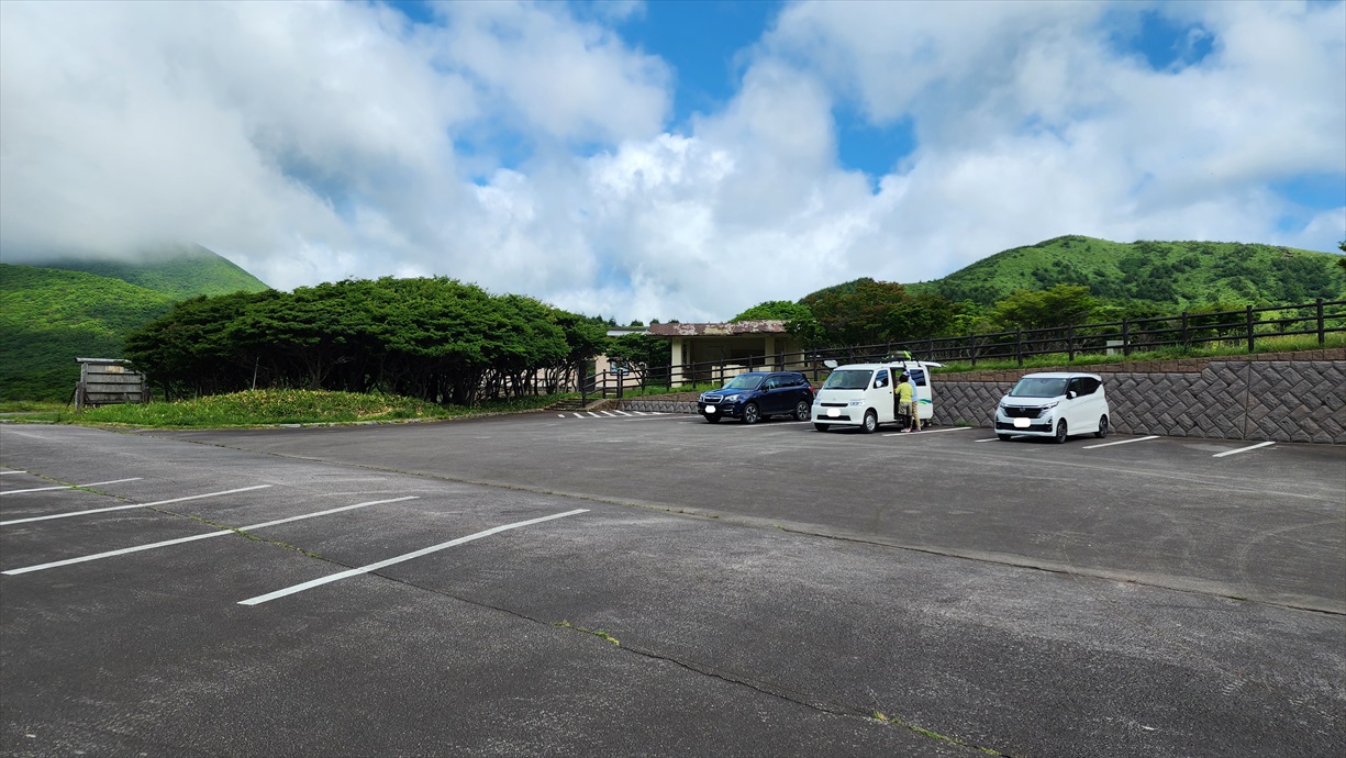 賽の河原駐車場 登山開始時は4台だけだったが・・・ |