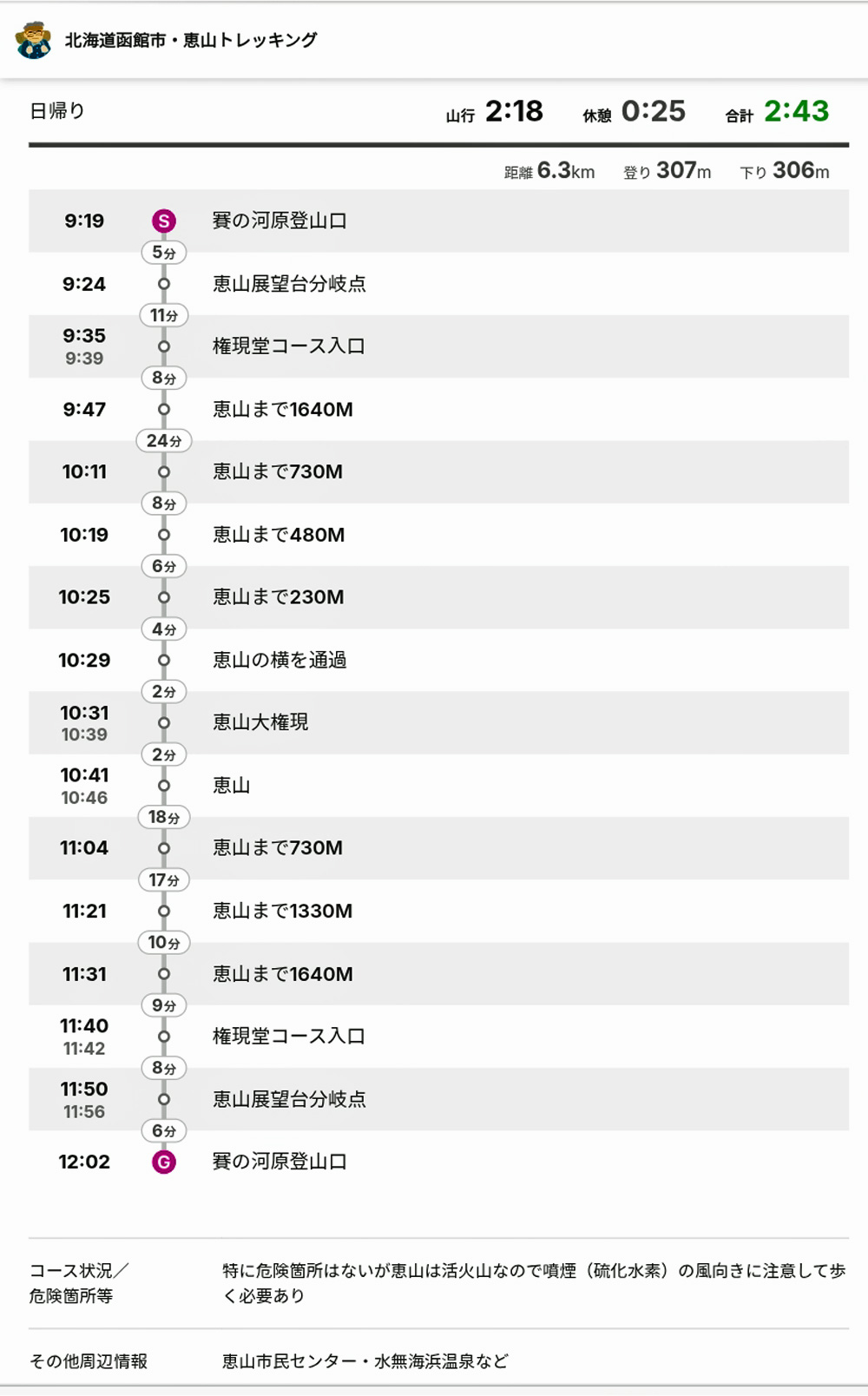 《恵山コースタイム他》 写真撮影時間20分~100分含む |