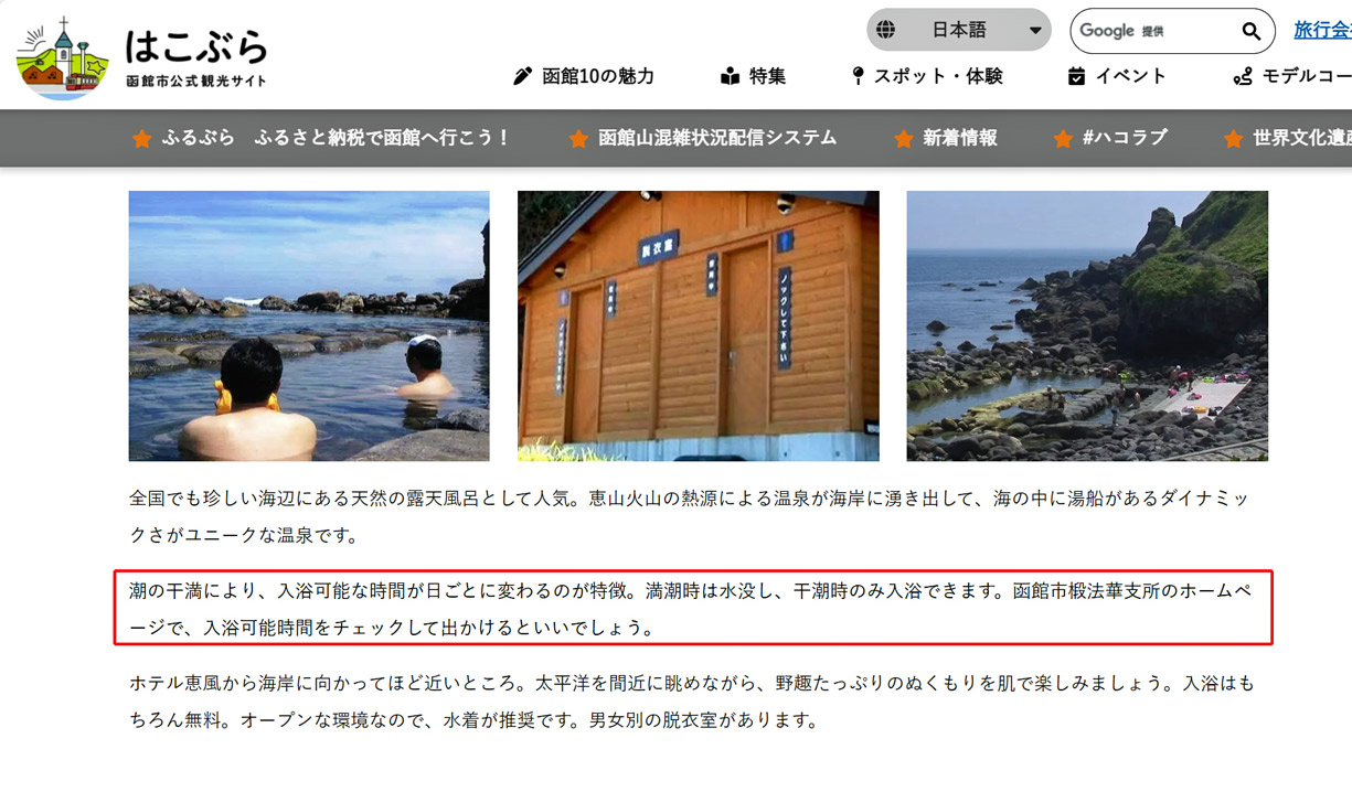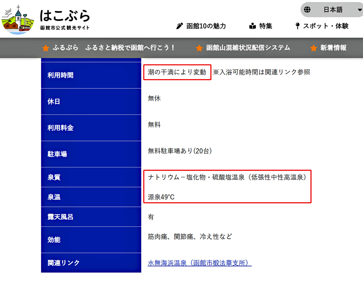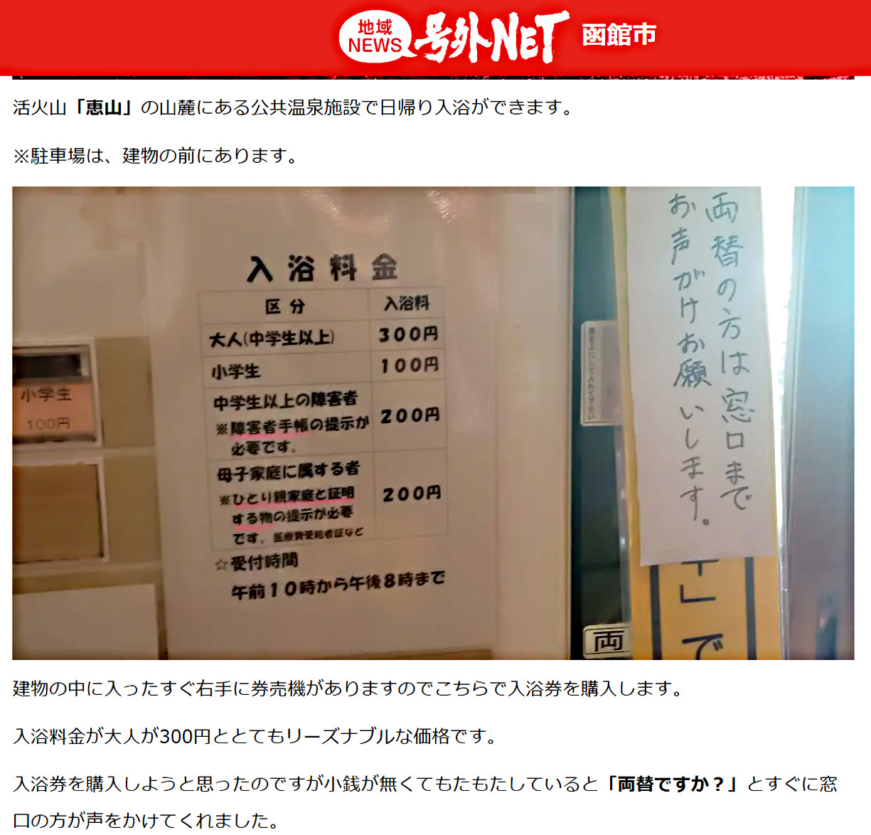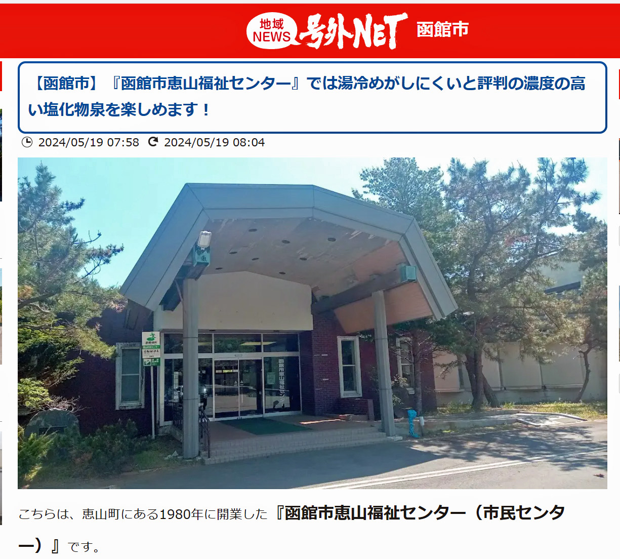 恵山賽の河原駐車場から車で10分「函館市恵山福祉センター」で汗を流す 公式サイトからスクショ |