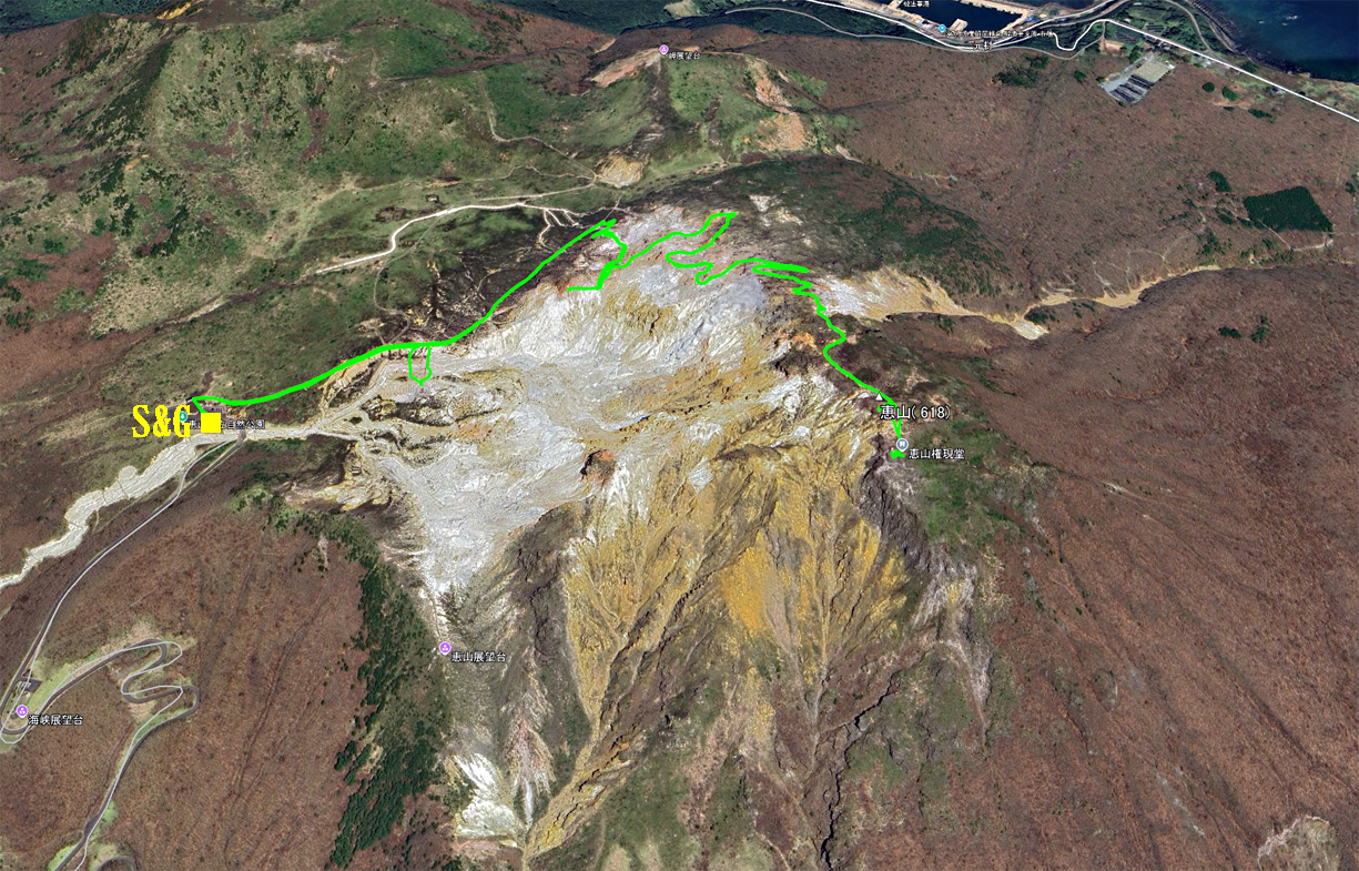 恵山鳥瞰図 恵山ヤマレコ⇒https://www.yamareco.com/modules/yamareco/detail-8392684.html |