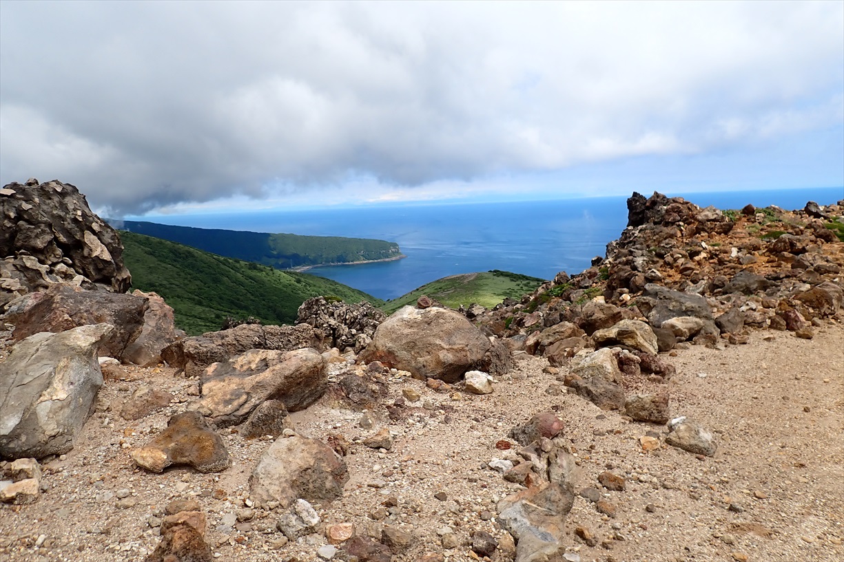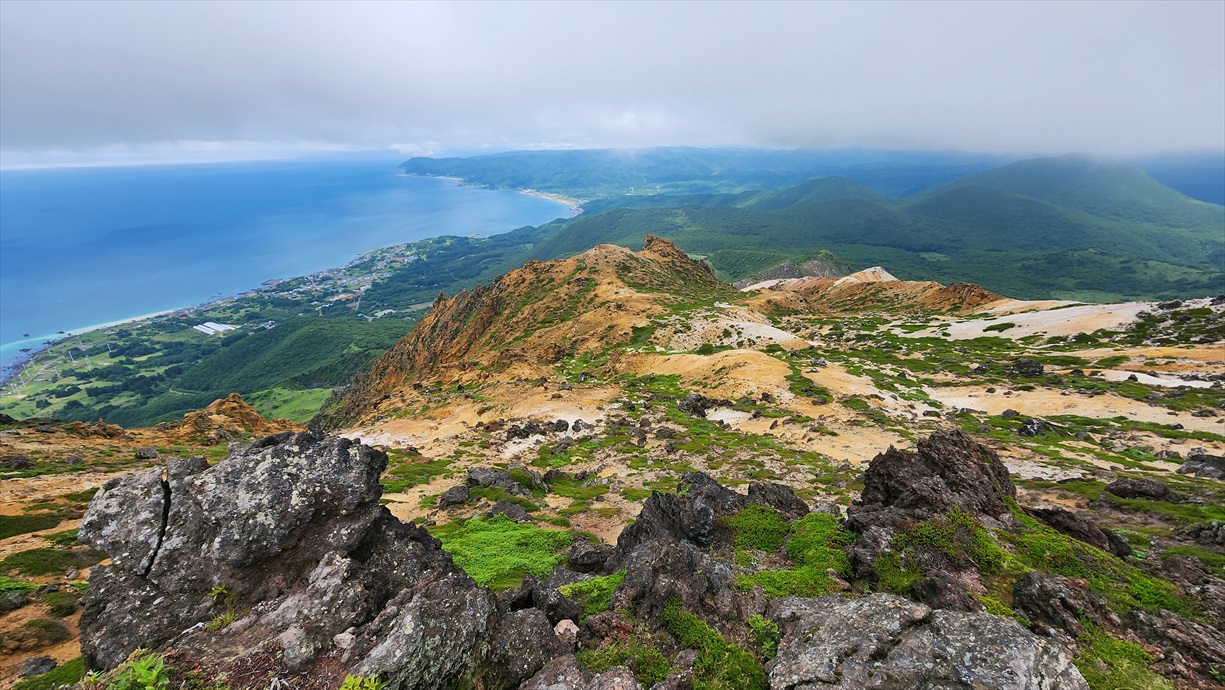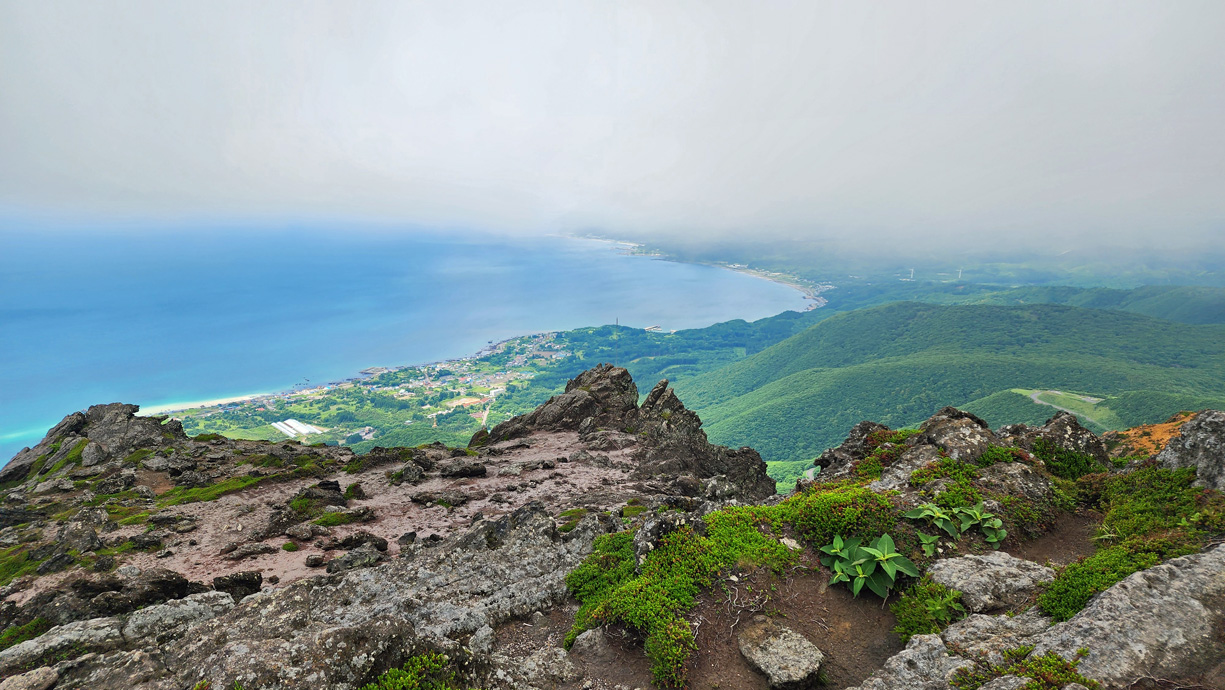 恵山より山背泊漁港&昨夜車中泊の道の駅方面展望 | ||||