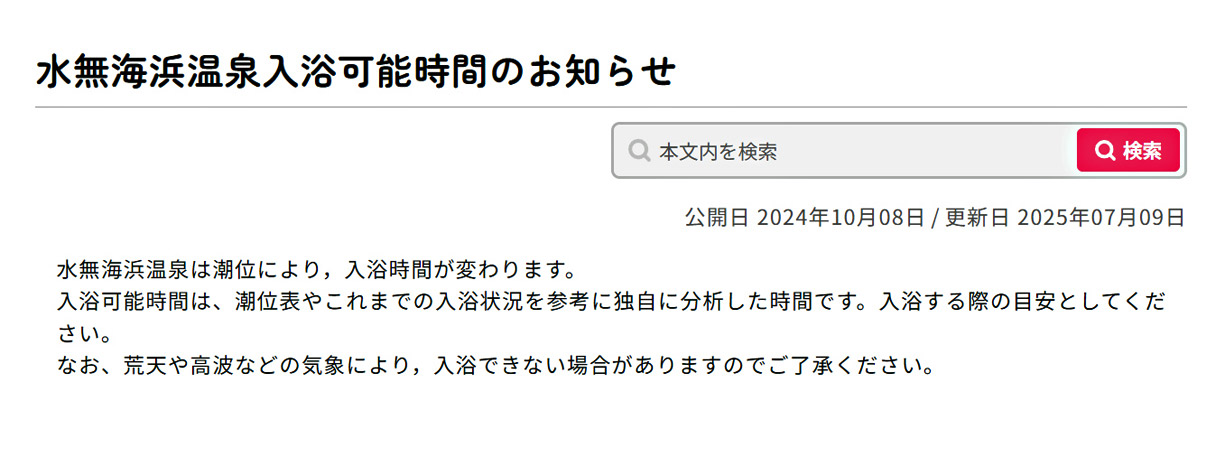 幻の温泉・水無海浜温泉とは 「産まれたままの姿で入浴が最高」照れ屋さんは水着もOK |