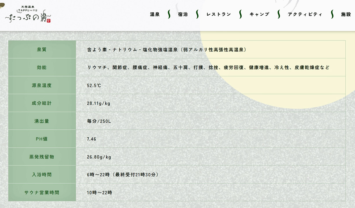 道の駅施設内の温泉で汗を流す 泉質満足度(星印の説明はMENUページ) 管理人☆☆☆ |