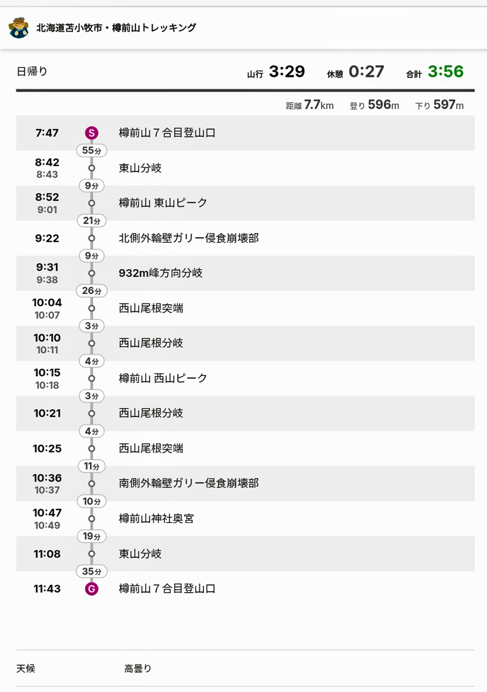 《樽前山コースタイム他》 写真撮影時間20分〜100分含む |