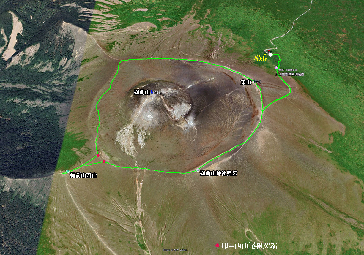 樽前山鳥瞰図 樽前山ヤマレコ⇒https://www.yamareco.com/modules/yamareco/detail-8395724.html |