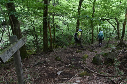 つるべ落としの滝分岐点 | 位牌岳まであと10分 | |||