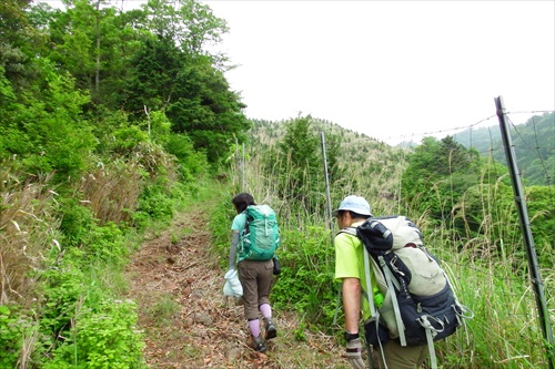 害鳥獣避けネットに沿って登る | これから向かう尾根道 | |||