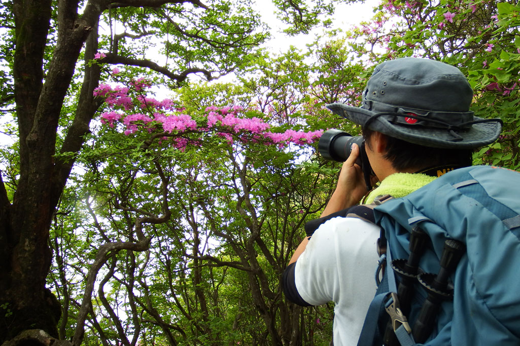 アシタカツツジ撮影会が始まる♪ 本来はもっと少し下から見られるらしいが暖冬で開花時期が早まってしまったようだ (;´Д`) |