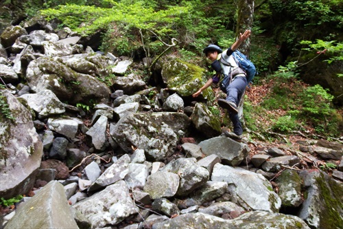 このような涸沢岩ゴロ地点がいたるところにあるので慎重にくだりたい | ||||