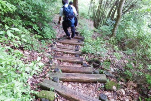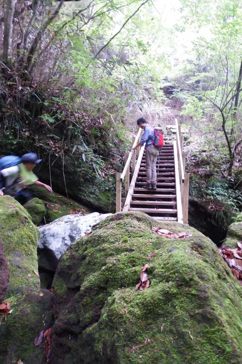 この木階段を上れば「つるべ落としの滝登山口」まであとわずか | ||||